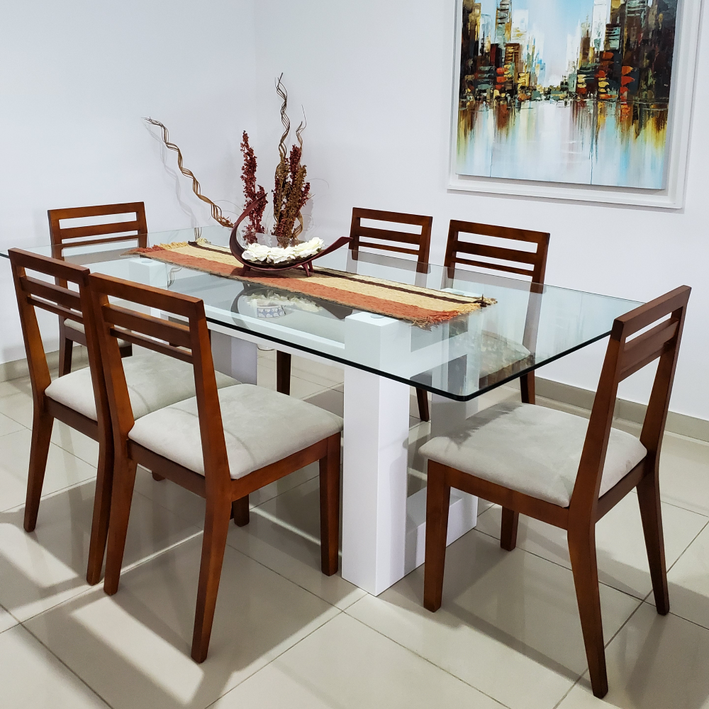 Base construida en madera de Cedro lustrada al poliuretano preparada para tapa de cristal de hasta 2,00 m x 1,00 m